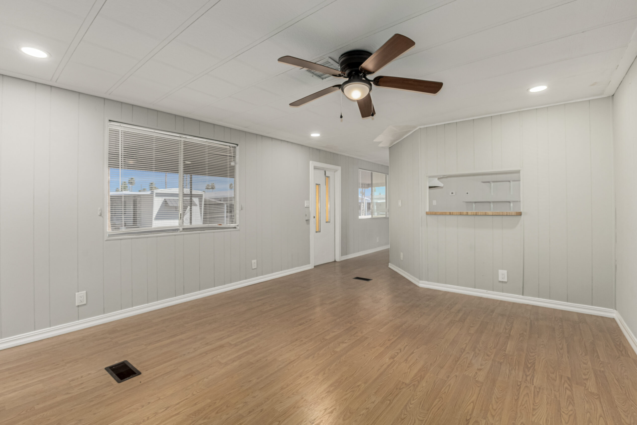 TURN-KEY and MOVE-IN READY! Looking for the perfect retirement home? This charming manufactured home is located in the pet-friendly, active community of Mesa Village. It features 2 bedrooms and 1.5 bathrooms, making it ideal for comfortable living. Recently remodeled, the home is equipped with central AC and ceiling fans to keep you cool year-round. Inside, you’ll find fresh paint and modern appliances, along with a walk-in shower for added convenience.