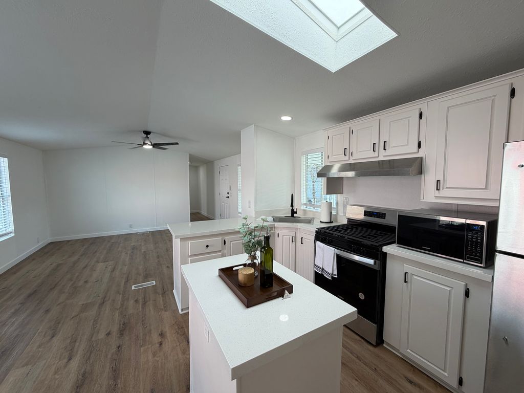 Discover this charming 3-bedroom, 2-bathroom home, thoughtfully designed within a 16×70 sq. ft. layout. Enjoy bright and airy living spaces featuring vaulted ceilings, skylights, and ceiling fans to keep you comfortable year-round.