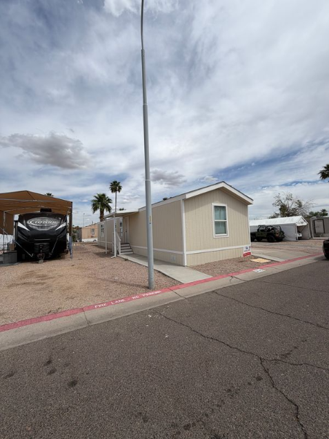 Discover your new home in the GATED, ALL-AGE community of Seyenna Vistas! This manufactured home offers a 16×66 sq. ft layout with 3 bedrooms and 2 bathrooms. The home offers convenient 3-car parking carport, providing organized and easy access for multiple vehicles. Additionally, it is equipped with central AC to keep you comfortable year-round. Inside, you’ll find walk-in showers, granite countertops, and modern appliances, all recently renovated to enhance your living experience.